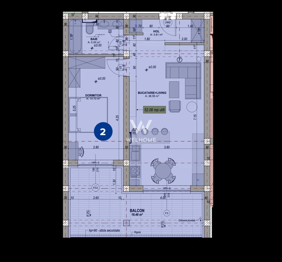 - Suprafata utila: 52.06 mp