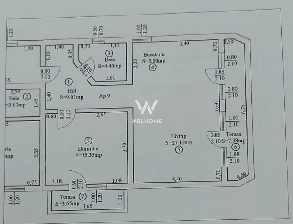 - Dormitor, baie, living cu bucatarie deschisa, hol