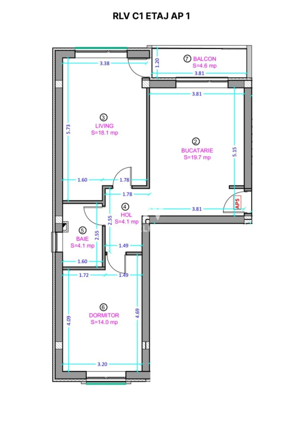 Apartament disponibil la etaj intermediar cu predare la alb - suprafata utila - 60 mp utili si balcon 4.6 mp