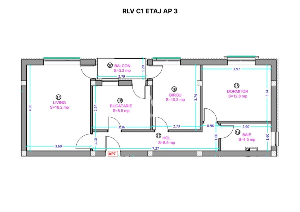 Apartament disponibil la etaj intermediar cu predare la alb - suprafata utila - 62.7 mp utili si balcon 3.3 mp