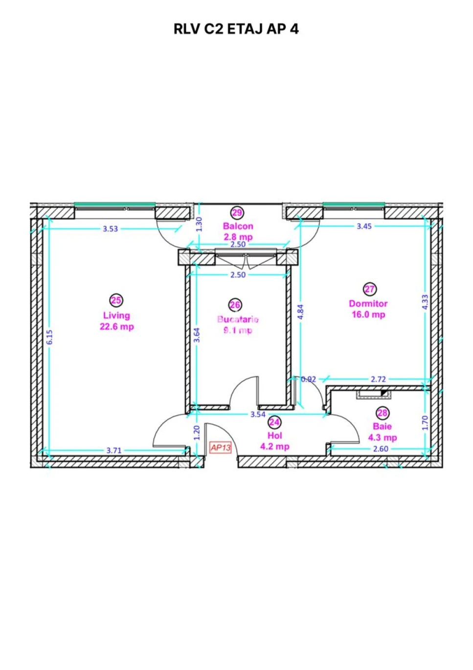Apartament disponibil la parter cu predare la alb - suprafata utila - 56.2 mp utili si balcon 2.8 mp