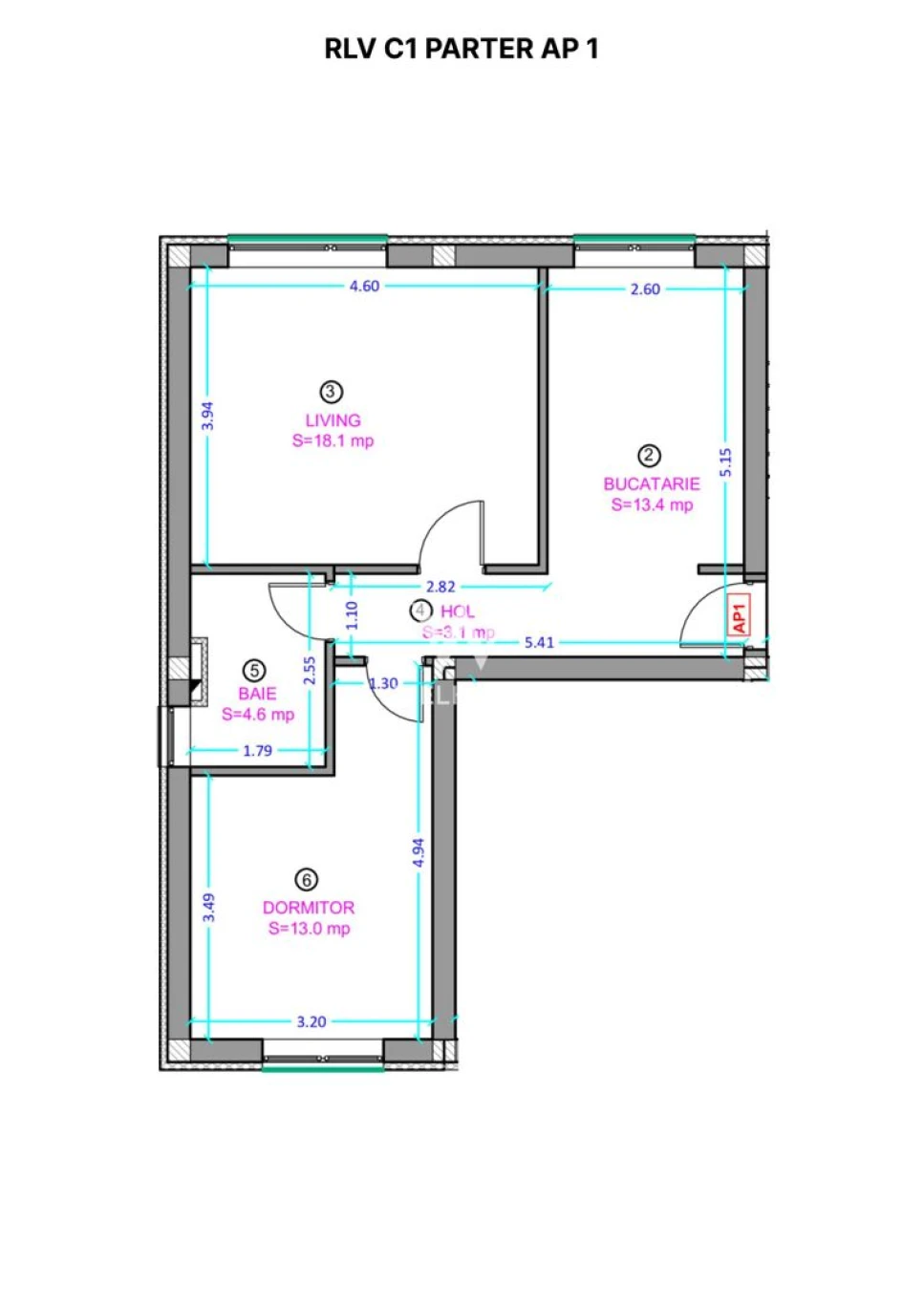Apartament disponibil la parter cu predare la alb - suprafata utila - 52.2 mp utili + 12 mp gradina