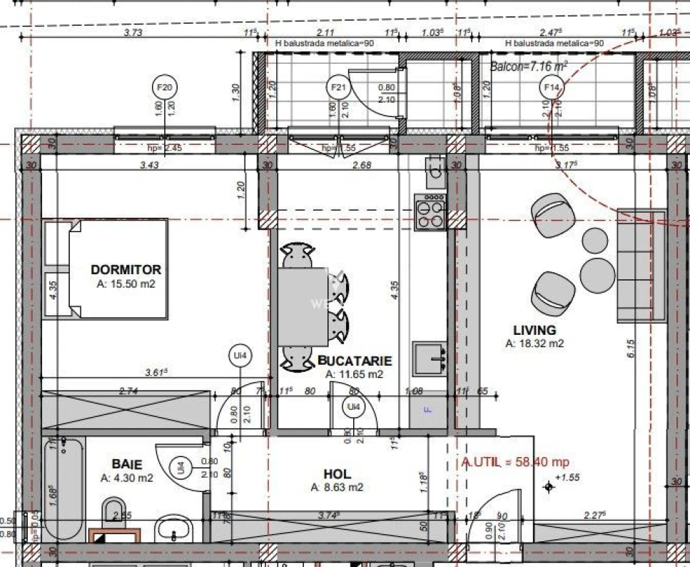 - Suprafata utila: 58 mpu + balcon de 7 mpu