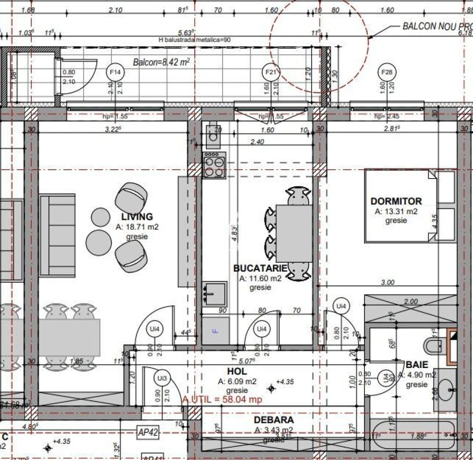 - Suprafata utila: 58 mpu + balcon de 8 mpu