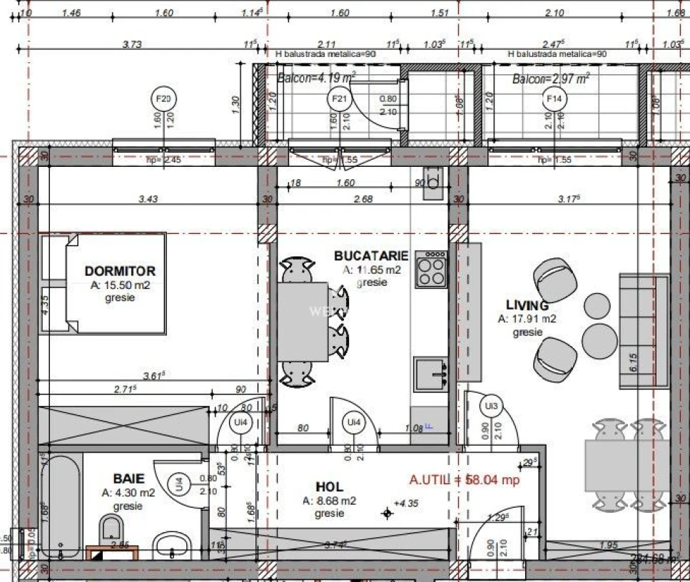 - Suprafata utila: 58 mpu + balcon de 7 mpu