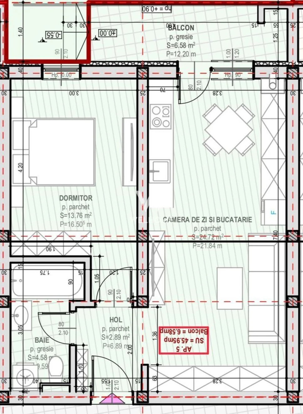 - Suprafață utilă de 45.95mp + balcon de 6,58 mp, prevăzut cu cămară/debara pentru depozitare.