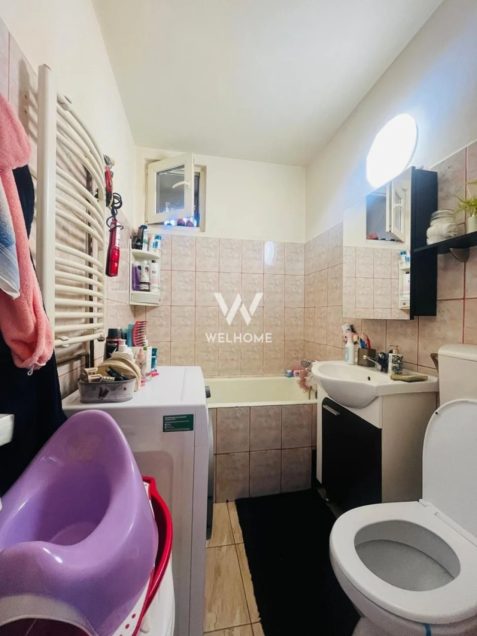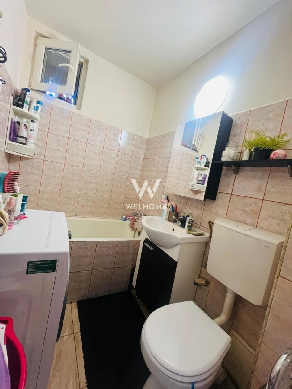 Baie dotată cu cadă și finisaje funcționale plus geam geam de aerisire