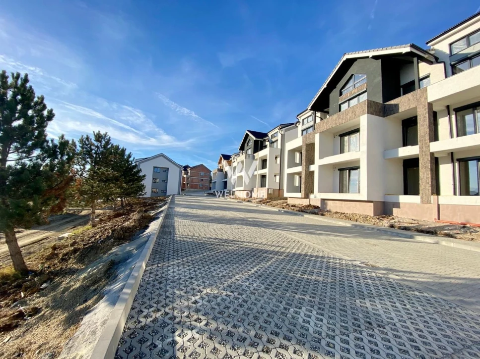 - Exteriorul se preda LA CHEIE: jaluzele electrice la geamuri, izolatie cu vata bazaltica si piatra naturala, balcoane cu granit si sticla securizata, locuri de joaca pentru copii, terenuri pentru sport, trotuare pavate, strazi asfaltate, spatii verzi.
