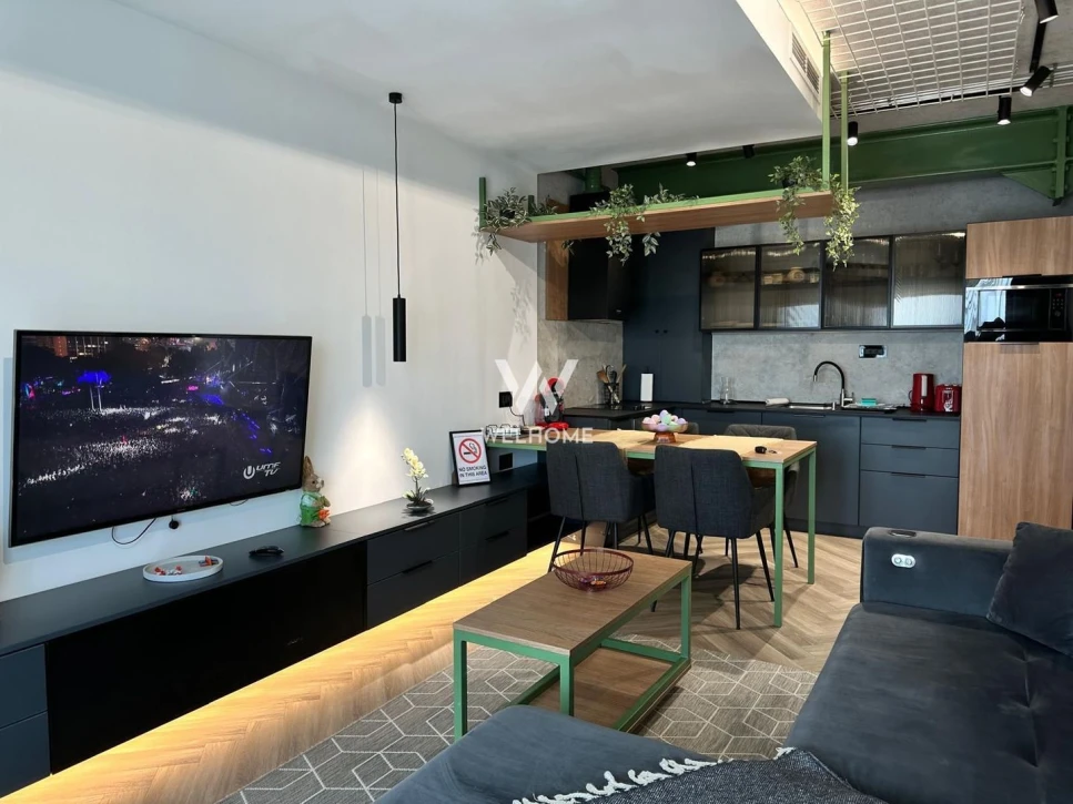 - Locuinta este mobilata si utilata cu finisaje premium, fiind alcatuita din living cu bucatarie open space, dormitor, baie si balcon.