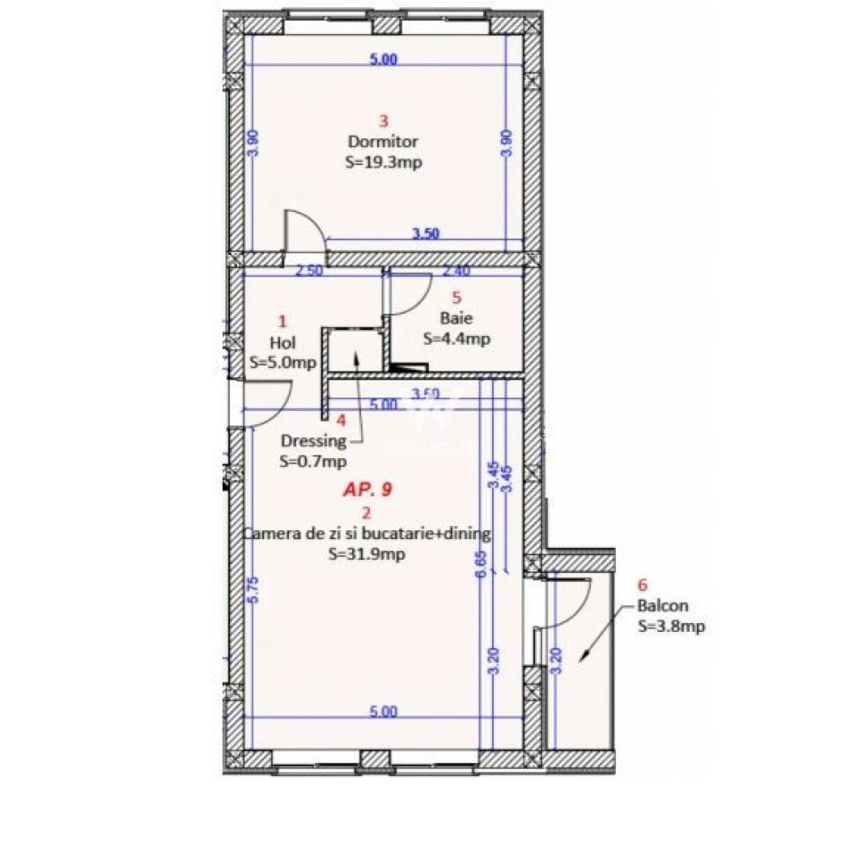 - Compartimentare practica: hol, dormitor, living open space cu bucatarie, baie, balcon.