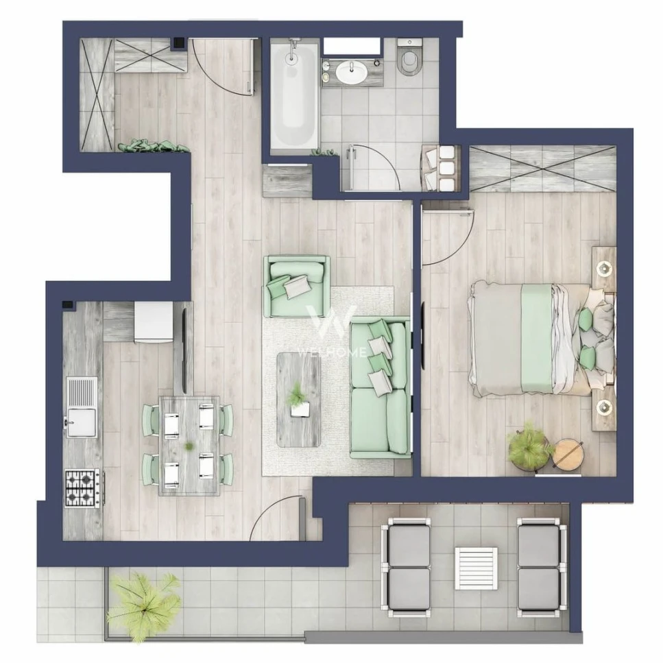 Suprafata: 47.5 mp utili + balcon de 10 mp.