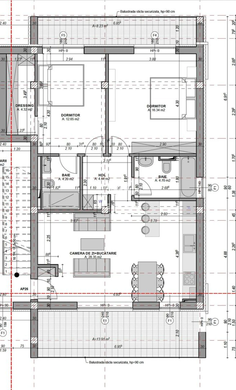 - Balcon finisat cu granit și balustradă din sticlă securizată