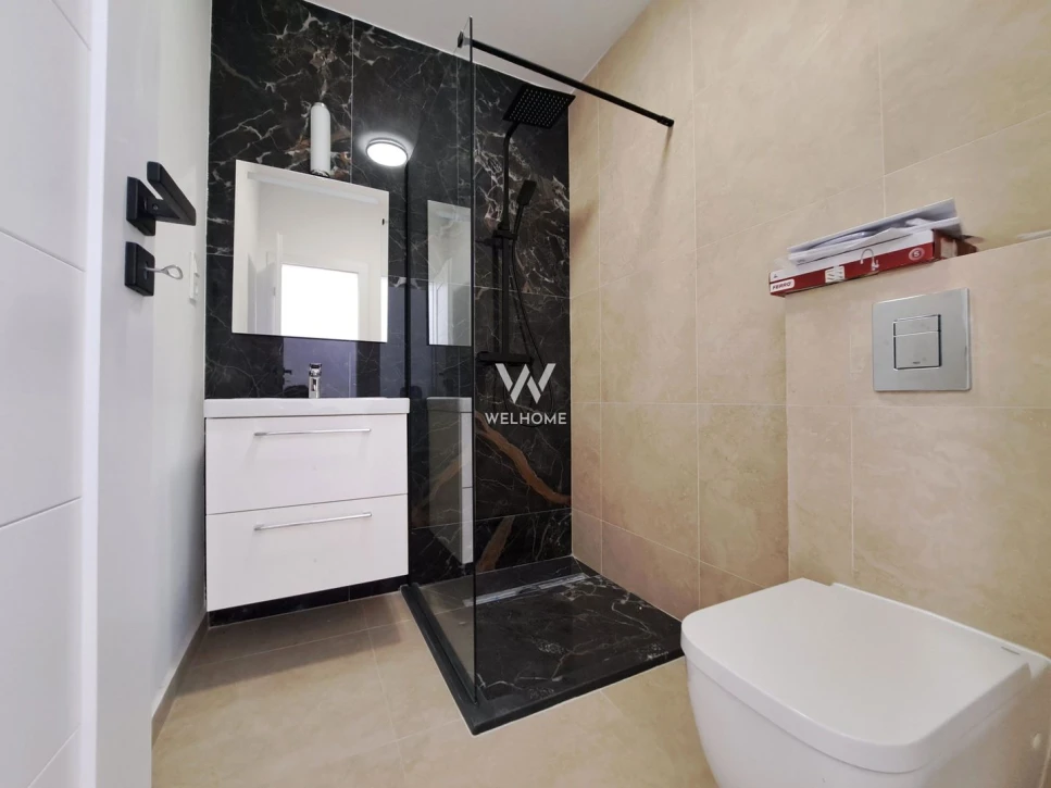 Apartament decomandat - hol larg acces, de o parte bucataria, living, baie cu dus, de cealalta parte sunt 2 dormitoare si baie cu cada