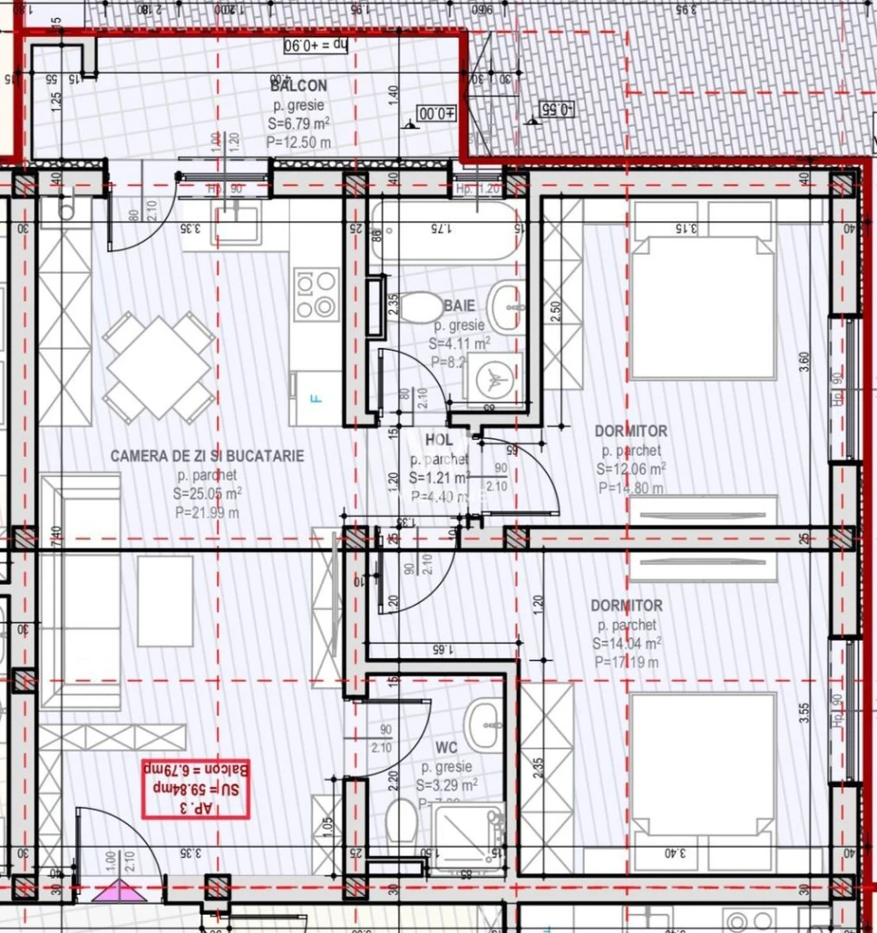 - Suprafață utilă de 59.84 mp + balcon de 6,79 mp, prevăzut cu cămară/debara pentru depozitare.
