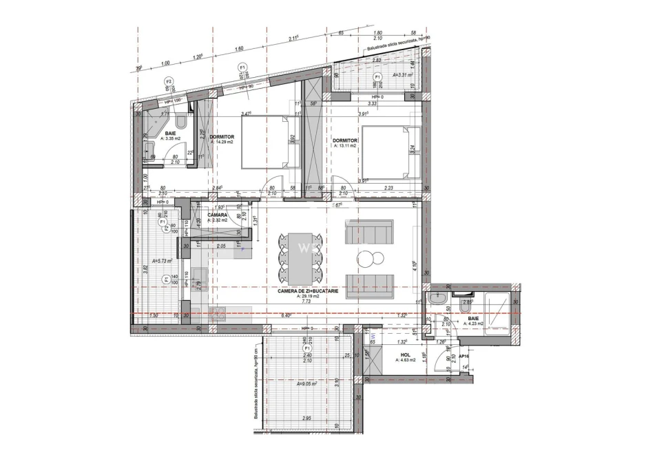 Agenția Welhome Imobiliare vă prezintă spre vânzare un apartament cu 3 camere, finisat la alb, cu o suprafață utilă de 71.6 mp, completată de trei terase cu suprafață totală de 18.09 mp, cu orientare sudică — perfectă pentru lumină naturală pe tot parcursul zilei.
