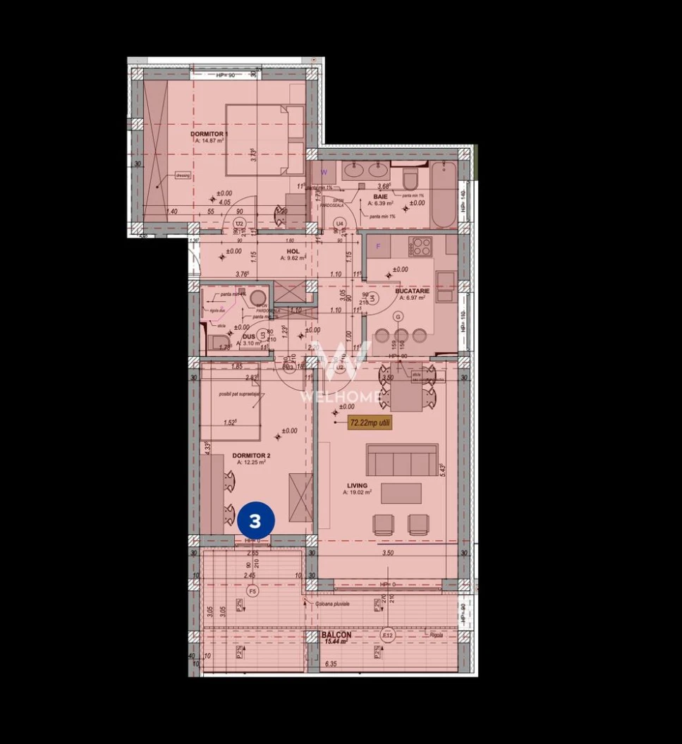Apartamentul de 3 camere LA CHEIE, amplasat in zona Vest, Cristian, Sibiu este o alegere excelenta pentru cei care cauta apartamente de vanzare Sibiu. Prin intermediul acestui anunt va aducem la cunostinta aceasta oferta de apartament modern, care se bucura de o pozitionare deosebita, la doar 4 minute de Zona Vest si Aeroport. Proiectul rasfrange un ansamblu modern cu peste 50 de vile compuse din cate 9 apartamente. Apartamentul de 3 camere are o suprafata utila de 72.22 mp si este alcatuit din 2 dormitoare, living, bucatarie inchisa, 2 bai si hol. In plus, dispune si de un balcon tip terasa cu o suprafata de 15.44 mp, care va fi cu siguranta locul preferat in serile de vara. Apartamentele sunt disponibile la parter si etajul 1 a unui bloc cu 2 etaje. Cu toate acestea, ceea ce face aceasta oferta speciala este faptul ca apartamentul se preda LA CHEIE, cu centrala termica si incalzire in pardoseala, sistem electric complet cu prize si intrerupatoare, peretii tencuiti, gletuiti si lavabila, geamuri termopan, usa de intrare, instalatii electrice, termice si sanitare, usi de interior, gresie, faianta, parchet, etc. Exteriorul se preda, de asemenea, LA CHEIE, cu jaluzele electrice la geamuri, izolatie cu vata bazaltica si piatra naturala, balcoane cu granit si sticla securizata, locuri de joaca pentru copii, terenuri pentru sport, trotuare pavate, strazi asfaltate si spatii verzi, care vor adauga un plus de valoare ansamblului. In plus, aceasta proprietate se bucura de o zona linistita, aer curat si priveliste catre munti, fapt care o face si mai atractiva. Iar daca sunteti preocupat de securitate, proprietatea este complet securizata si include un loc de parcare inclus in pret. Daca sunteti in cautarea apartamentelor de vanzare Sibiu, nu ezitati sa ne contactati pentru mai multe informatii si pentru a programa o vizionare. Pretul acestei proprietati este de 117.000 Euro. Telefon: 0756.033.943.