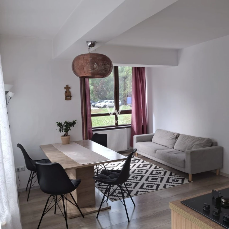 Locuința este mobilată și complet utilată, gata pentru mutare imediată, și include două camere, living cu bucătărie open-space, baie și două balcoane.