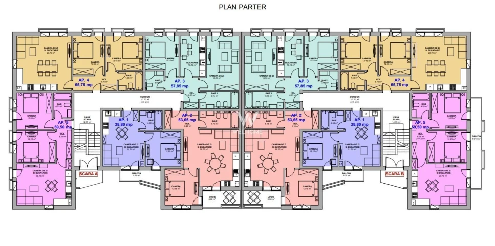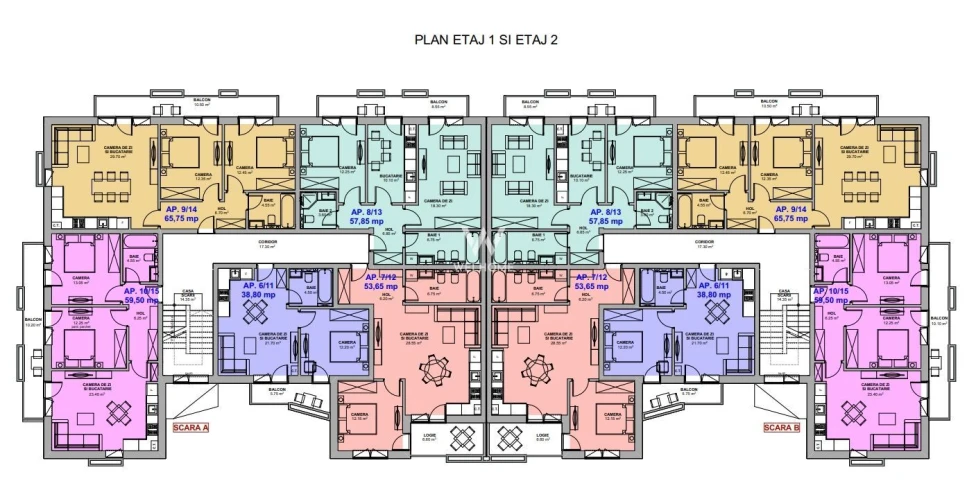 - Compartimentare practica: hol, living cu bucatarie, doua dormitoare, baie, balcon