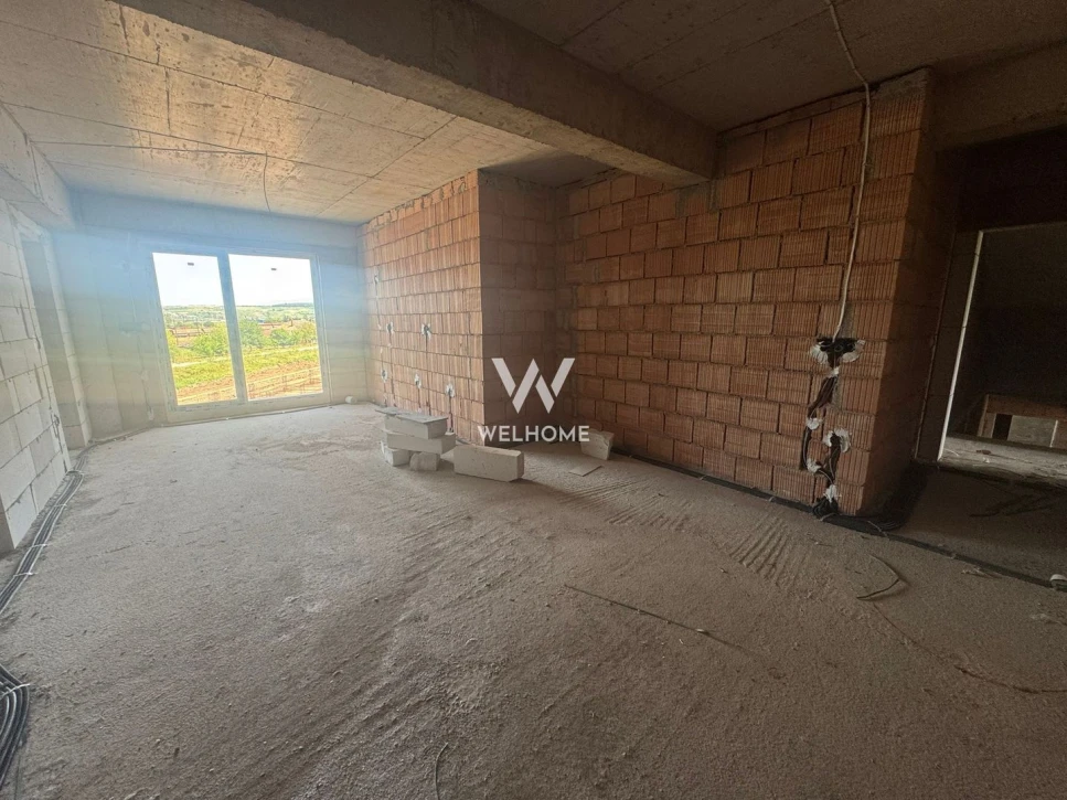 Hol, living open space cu bucatarie, doua dormitoare, baie si balcon (vezi schita)