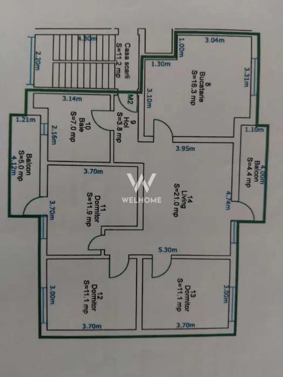 Apartamentul dispune de: bucătărie mobilată și utilată, 3 dormitoare, living, baie si 2 balcoane