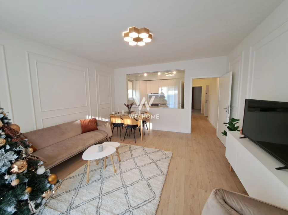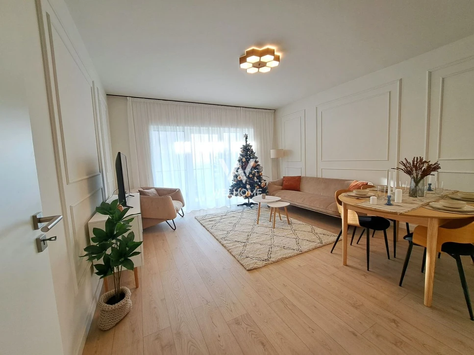 Note plus ale acestui apartament - dotat cu jaluzele electrice, videointerfon, imobil izolat cu vata bazaltica, placaje piatra naturala, balcoane cu granit si sticla securizata, aer conditionat si un loc de parcare asigurat in costul apartamentului