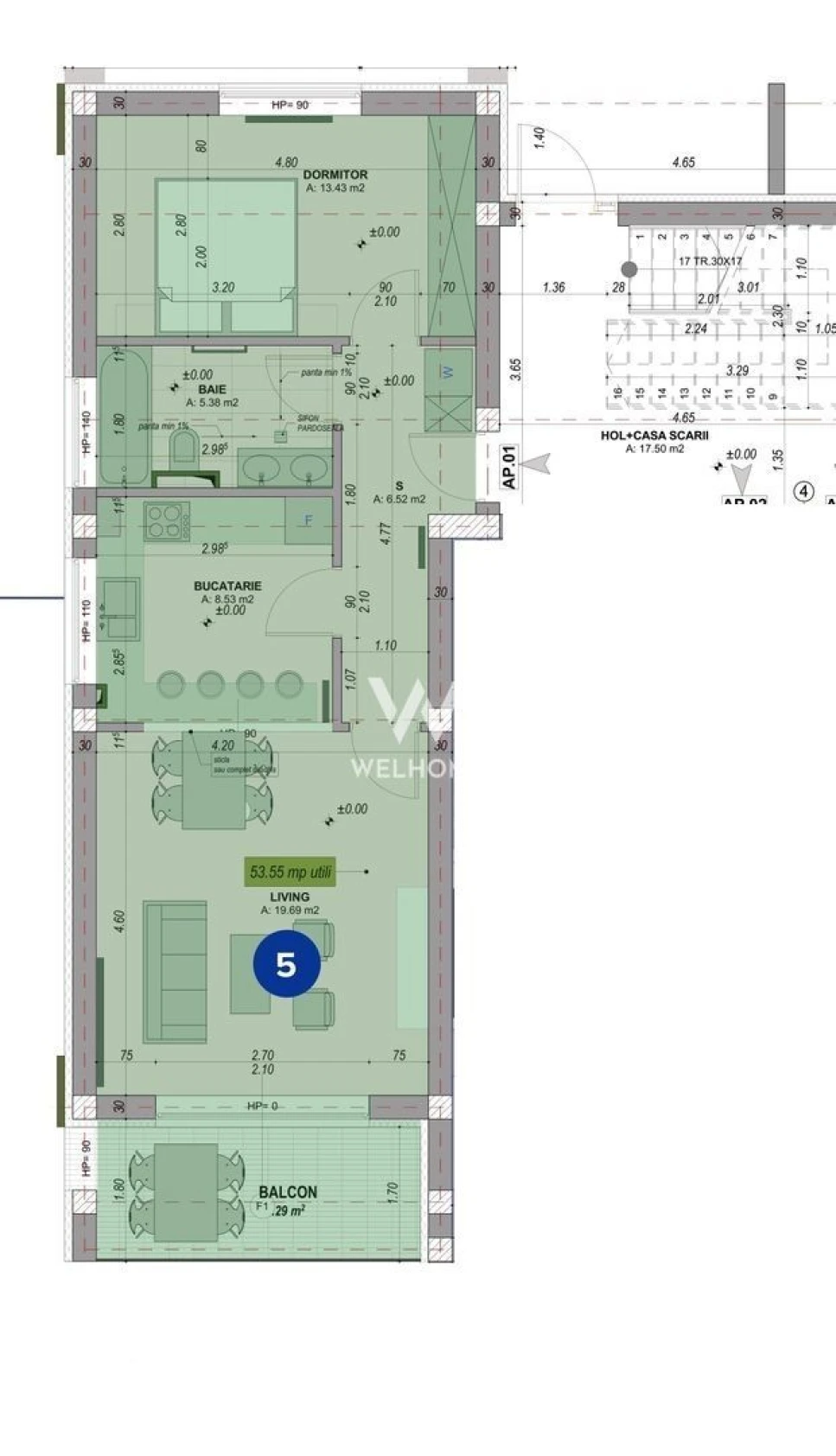 Locuinta propune spatiu generos, cu fereste mari su panorama frumoasa - sunt 54 mp utili + terasa 7 mp