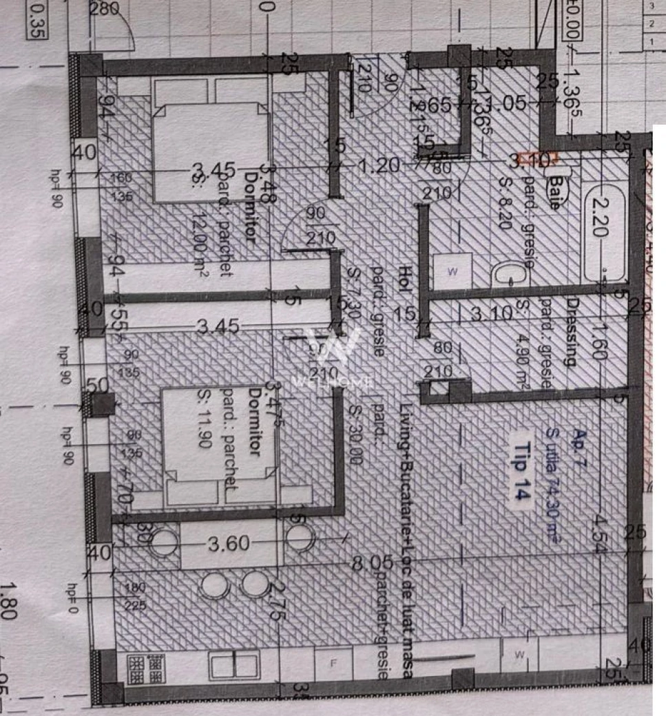 Apartament la etaj intermediar cu o suprafata utila de 74.3 mpu
