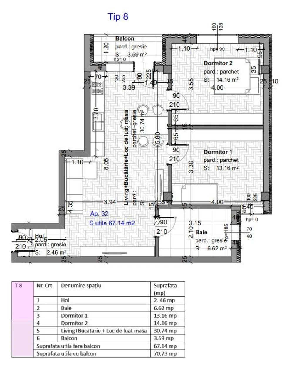 Apartament la etaj intermediar cu o suprafata utila de 67.14 mpu