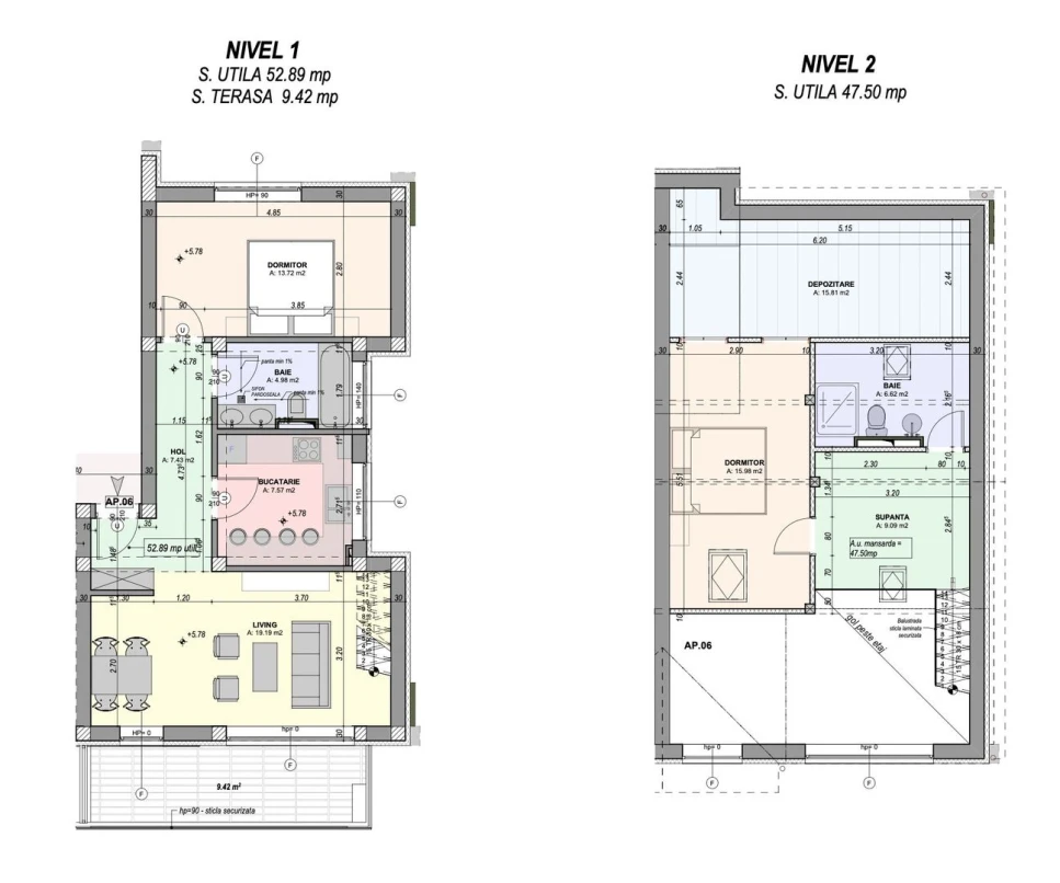 - Doua dormitoar,e living, bucatarie inchisa, baie, hol, spatiu de depozitare.