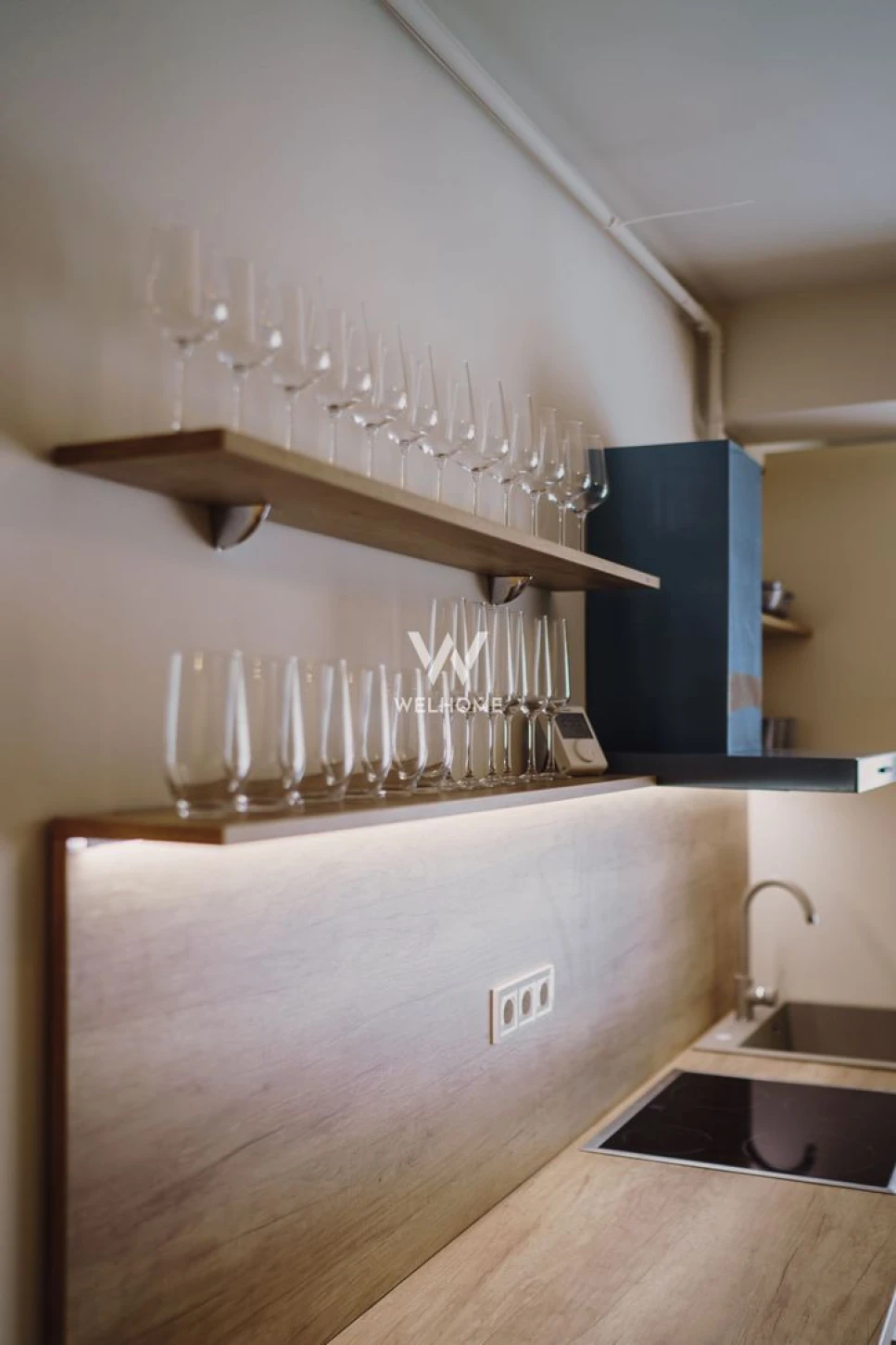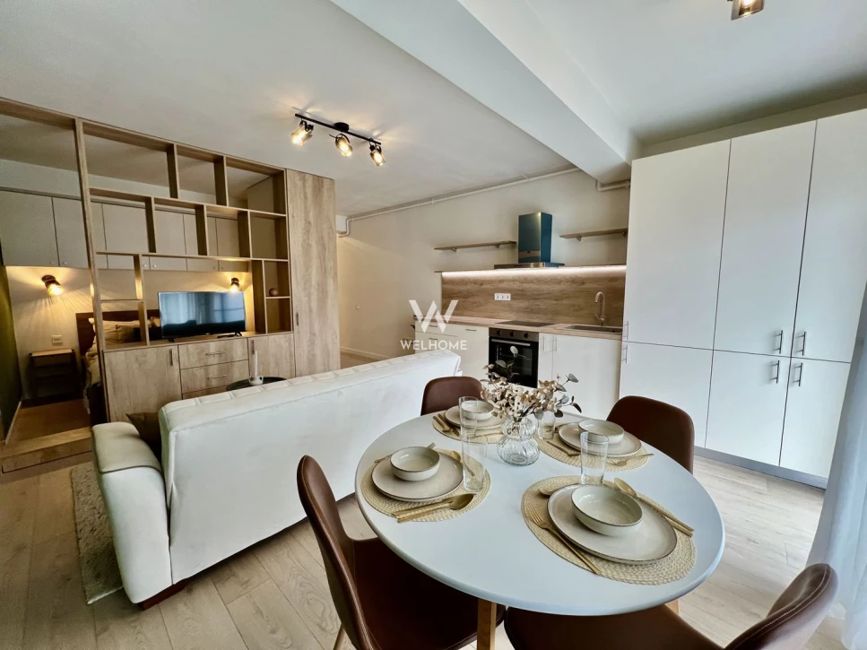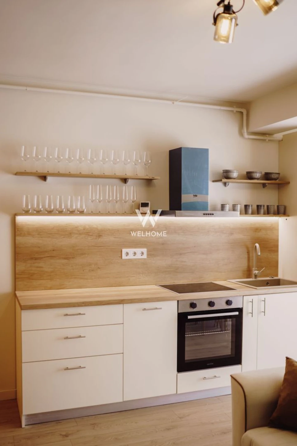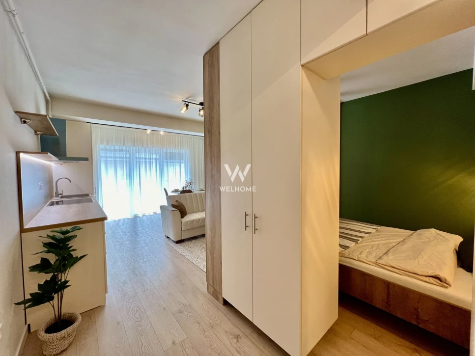 - Dormitor cu zona de living cu bucatarie, baie cu geam, hol.
