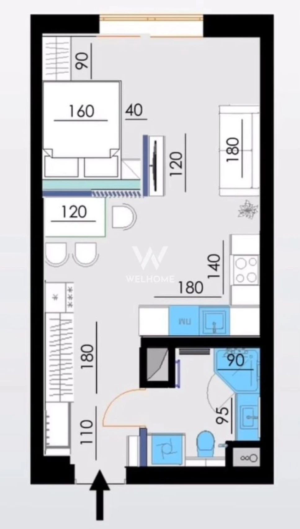 Apartament tip garsoniera cu o suprafață totală de 42.11mp din care terasa de 6.18mp disponibil la etaj intermediar poziționat pe SE cu vedere spre munți.