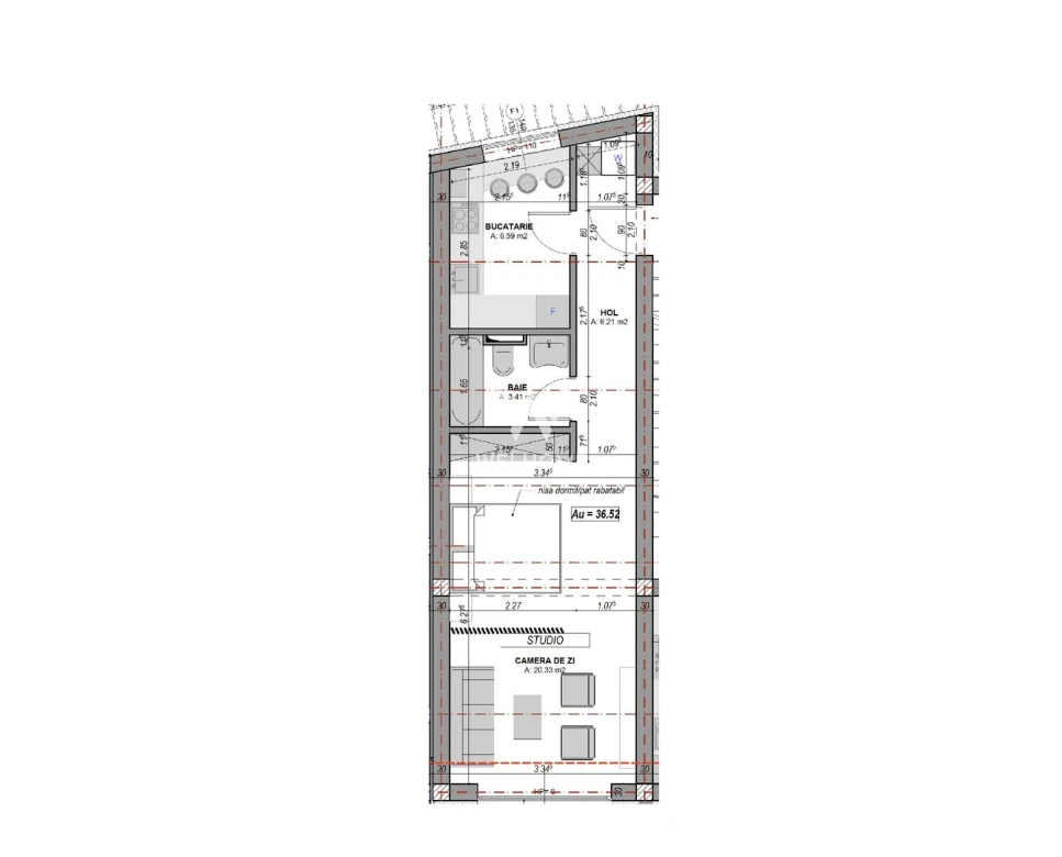 Agenția Welhome Imobiliare vă prezintă spre vânzare o garsonieră decomandată, finisată la alb, cu o suprafață utilă de 36.52 mp si un balcon cu orientare sudică, cu suprafața de 7.67 mp.