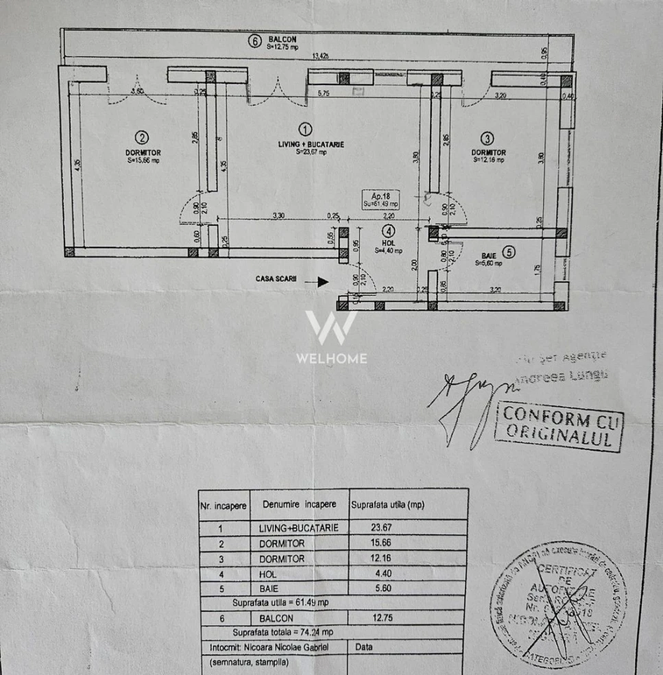 Apartament cu 3 camere, complet mobilat și utilat | 61 mp utili + balcon 12 mp | Loc de parcare inclus