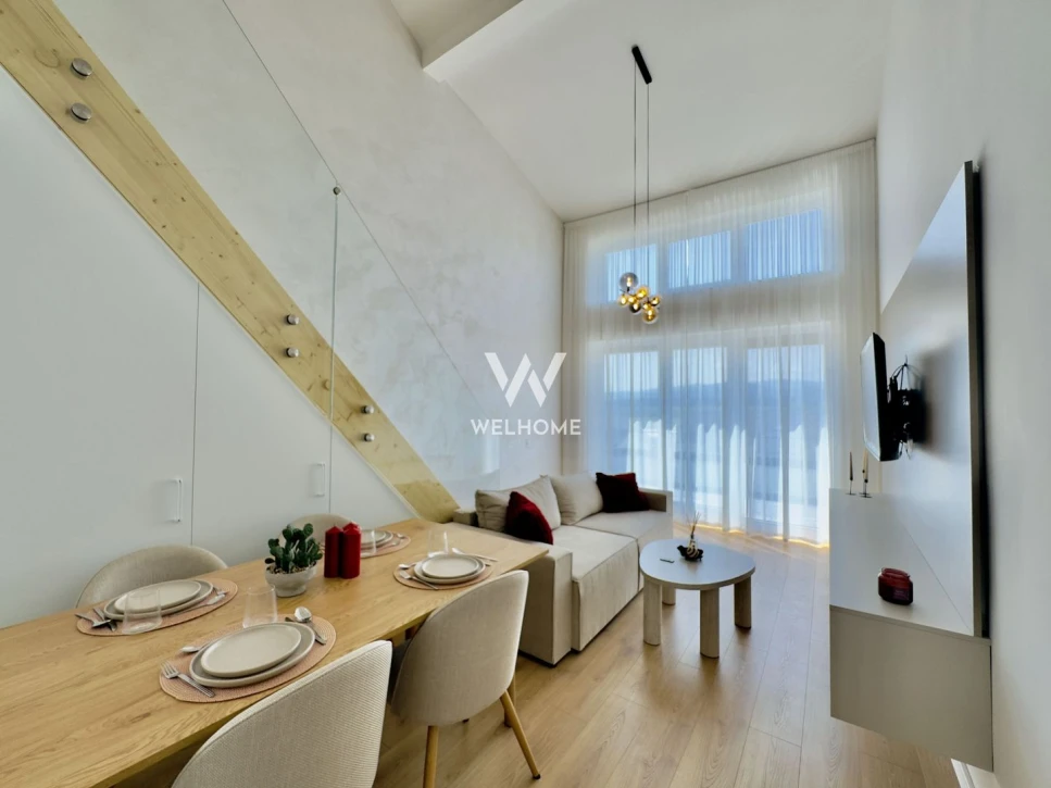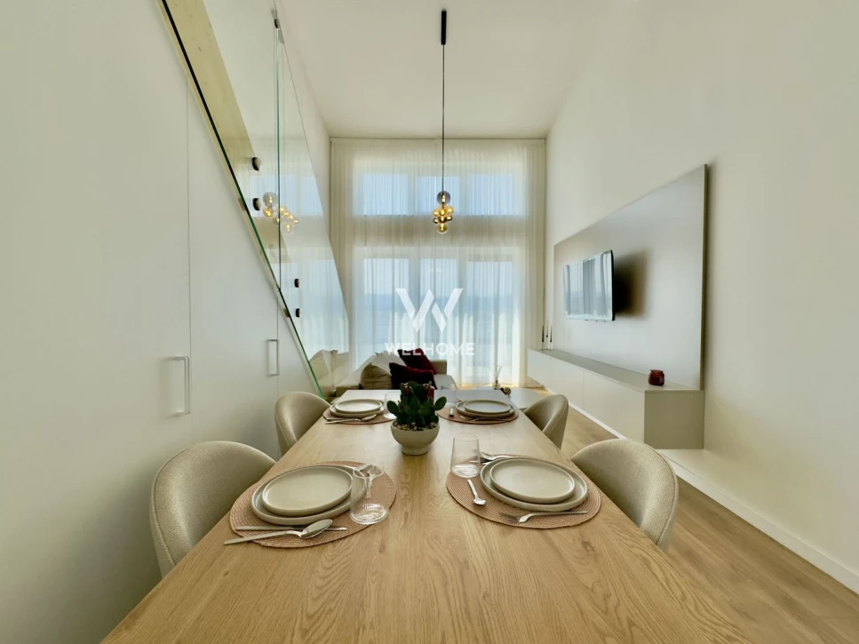 Agenția Welhome Imobiliare vă prezintă spre vânzare un penthouse cu 5 camere, mobilat complet, cu o suprafață utilă de 128.5 mp, completată de o terasă de 15.44 mp, cu orientare sudică — perfectă pentru lumină naturală pe tot parcursul zilei.