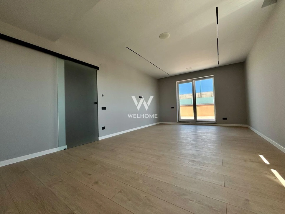 Stadiu de predare este LA CHEIE INTERIOR/EXTERIOR cu materiale premium, prize si intrerupatoare Schneider, sistem audio cu boxe montate in tot apartamentul si instalatie de climatizare, lumini ambientale, usi, terase pregatite pentru jacuzzi/piscina.